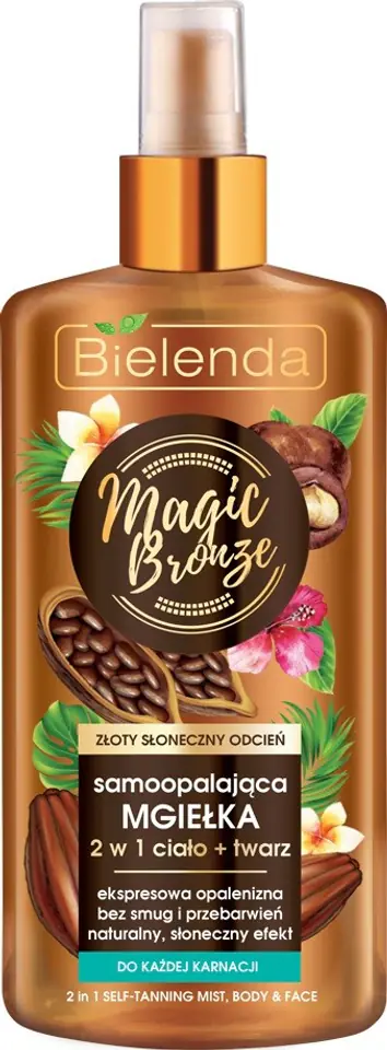 SAMOOPALAJĄCA MGIEŁKA DO CIAŁA to produkt pozwalający ekspresowo uzyskać efekt naturalnej opalenizny bez smug i przebarwień. Innowacyjna formuła lekkiej mgiełki w bezpieczny i przyjazny sposób nadaje skórze złoty słoneczny odcień. Pierwsze efekty mogą być widoczne już po godzinie od aplikacji. Systematyczne stosowanie sukcesywnie przyciemnia odcień skóry, brązowi go i nadaje zdrowego złotego kolorytu*.