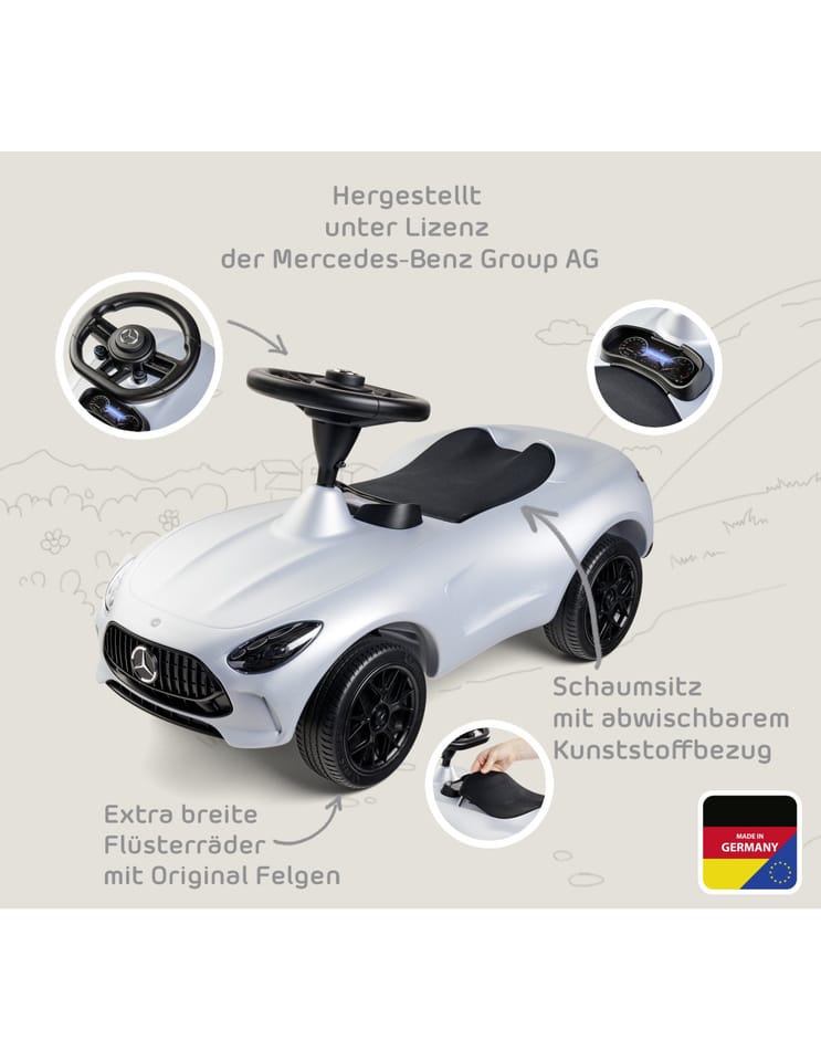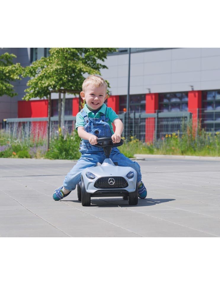 BIG Bobby Car Jeździk Mercedes AMG GT to wyjątkowy jeździk stworzony we współpracy z Mercedes-AMG GmbH, dzięki czemu najmłodsi fani motoryzacji mogą poczuć się jak za kierownicą prawdziwego samochodu sportowego. Stylowy wygląd, dbałość o detale i komfort jazdy sprawiają, że to idealny wybór dla małych kierowców już od 18. miesiąca życia!