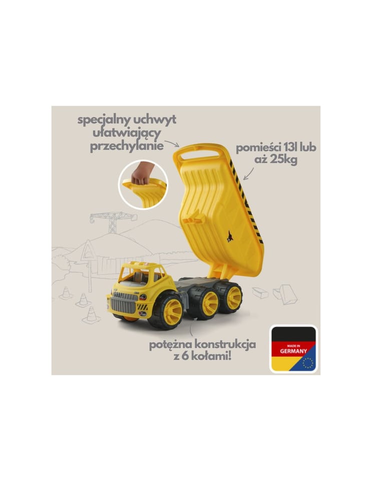 - - jaskrawożółty kolor i nowoczesne naklejki sprawiają, że wygląda jak prawdziwa wywrotka