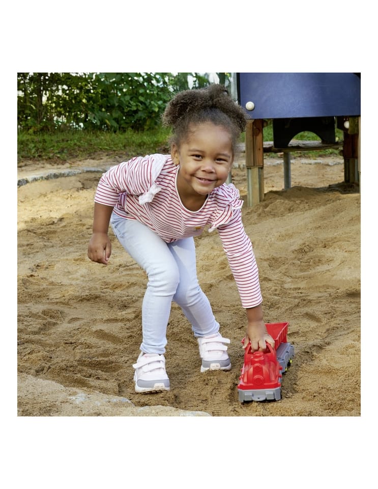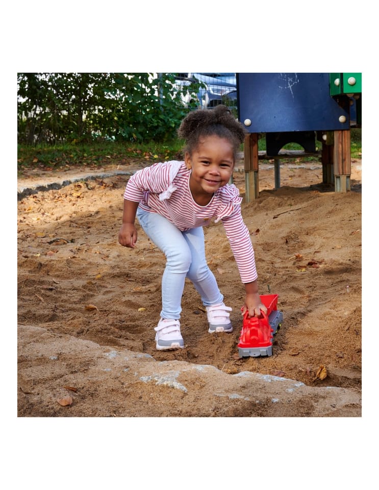 - Funkcjonalna wywrotka – Podnoszona skrzynia ładunkowa ułatwia przewożenie i wysypywanie piasku, klocków czy kamyków – zabawa jak z prawdziwą maszyną budowlaną!