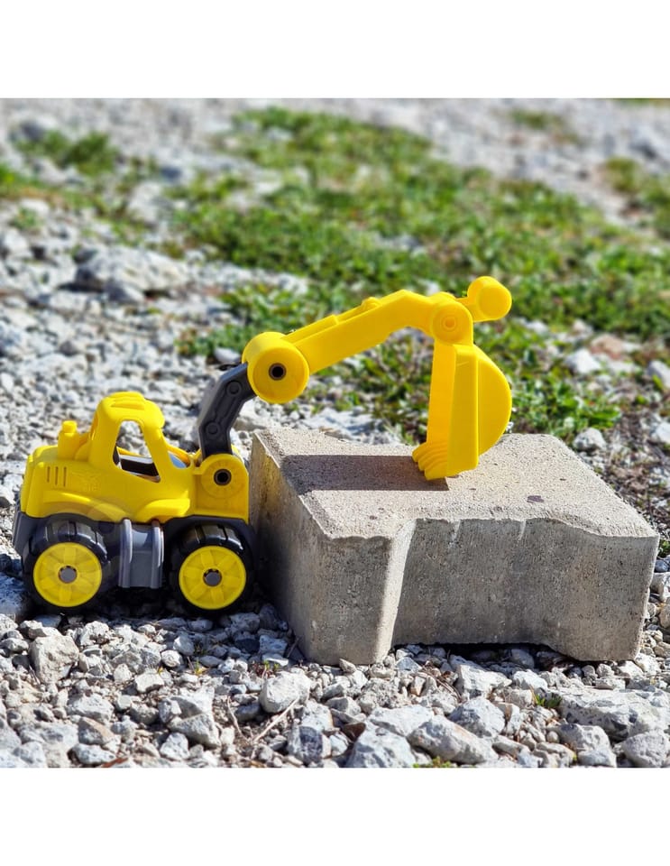 - - ergonomiczny dach kabiny pozbawiony ostrych krawędzi jest wprost idealny dla małych rączek, podobnie jak łyżka z przodu.