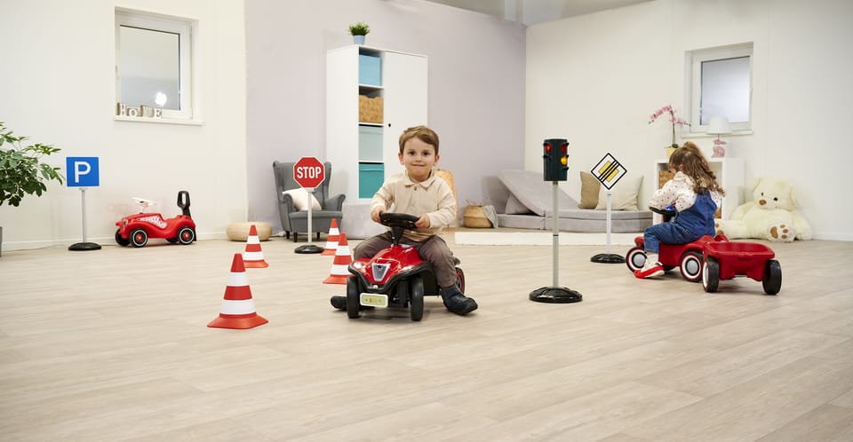 - - Zabawa i edukacja w jednym – świetne uzupełnienie toru dla BIG Bobby Car i innych pojazdów dziecięcych.