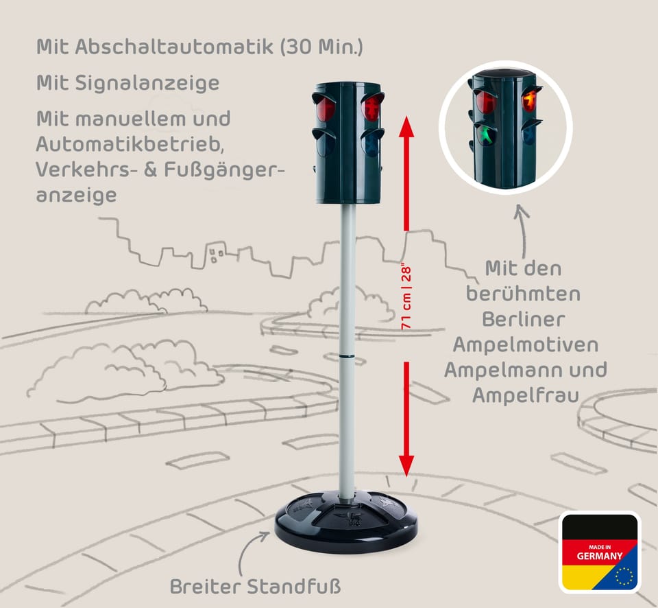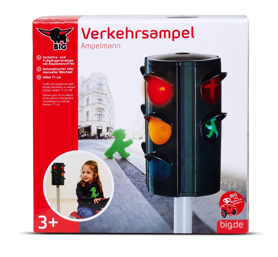 BIG Sygnalizacja świetlna to doskonały sposób na wprowadzenie najmłodszych w świat zasad ruchu drogowego. Dzięki realistycznej zmianie świateł i licencjonowanym postaciom Ampelmännchen & Ampelfrau z kultowej berlińskiej marki AMPELMANN, dzieci już od 3. roku życia mogą uczyć się bezpiecznego poruszania się po drodze w formie zabawy!