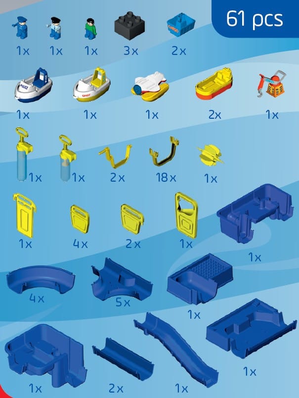 System kanałów Amsterdam Waterplay, łączy w sobie zabawę z przyjemnością obcowania z wodą. Dziecko wlewając wodę powoduje ruch, dzięki któremu poruszają znajdujące się w kanałach łódki. Prąd wody w kanale można uzyskać także wprawiając w ruch koło wodne.