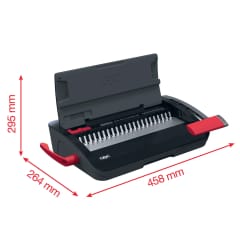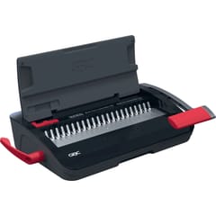 Bindownica ręczna GBC CombBind CB12 Model CombBind® CB12 to niezawodne, kompaktowe urządzenie przeznaczone do oprawy grzebieniowej niewielkich ilości dokumentów, idealny do użytku osobistego lub małego biura. Bez wysiłku dziurkuje jednocześnie do 12 kartek o gramaturze 80 g/m² i binduje do 165 kartek przy użyciu grzbietów plastikowych o średnicy 19 mm. Lekka i zajmująca niewiele miejsca konstrukcja pozwala na korzystanie z urządzenia w dowolnym miejscu i czasie oraz łatwe jego przechowywanie. Tacka, ułatwiająca usuwanie ścinków oraz poręczny schowek zapewniają większą wygodę użytkowania. Kolor czarny i srebrny. - Binduje do 165 kartek A5/A4 (80 g/m2) przy użyciu grzbietów o średnicy 19 mm.