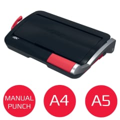 - Obsługiwany ręcznie dziurkacz z pojedynczą dźwignią zapewnia łatwe i niewymagające użycia dużej siły dziurkowanie.