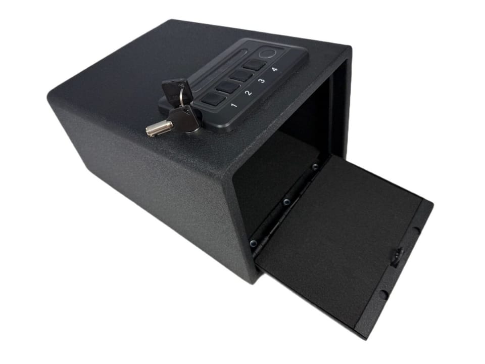 Szukasz bezpiecznego miejsca na swoją broń krótką, dokumenty, gotówkę, biżuterię lub inne cenne przedmioty? Ten kompaktowy sejf z zamkiem elektronicznym, czytnikiem linii papilarnych i możliwością otwierania kluczem to niezawodne rozwiązanie, które łączy funkcjonalność, nowoczesną technologię i wygodę użytkowania.