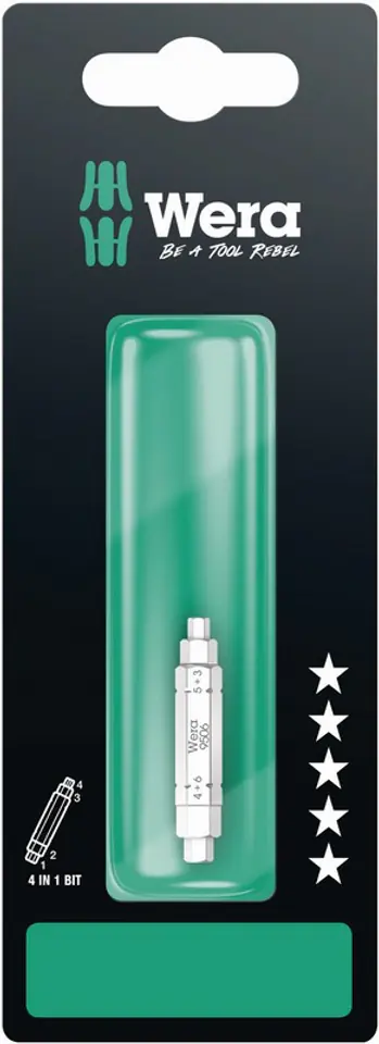 Jeden bit umożliwia pracę z czterema różnymi profilami śrub i wkrętów (z gniazdem sześciokątnym o rozmiarach3,0 4,0 5,0 6,0).