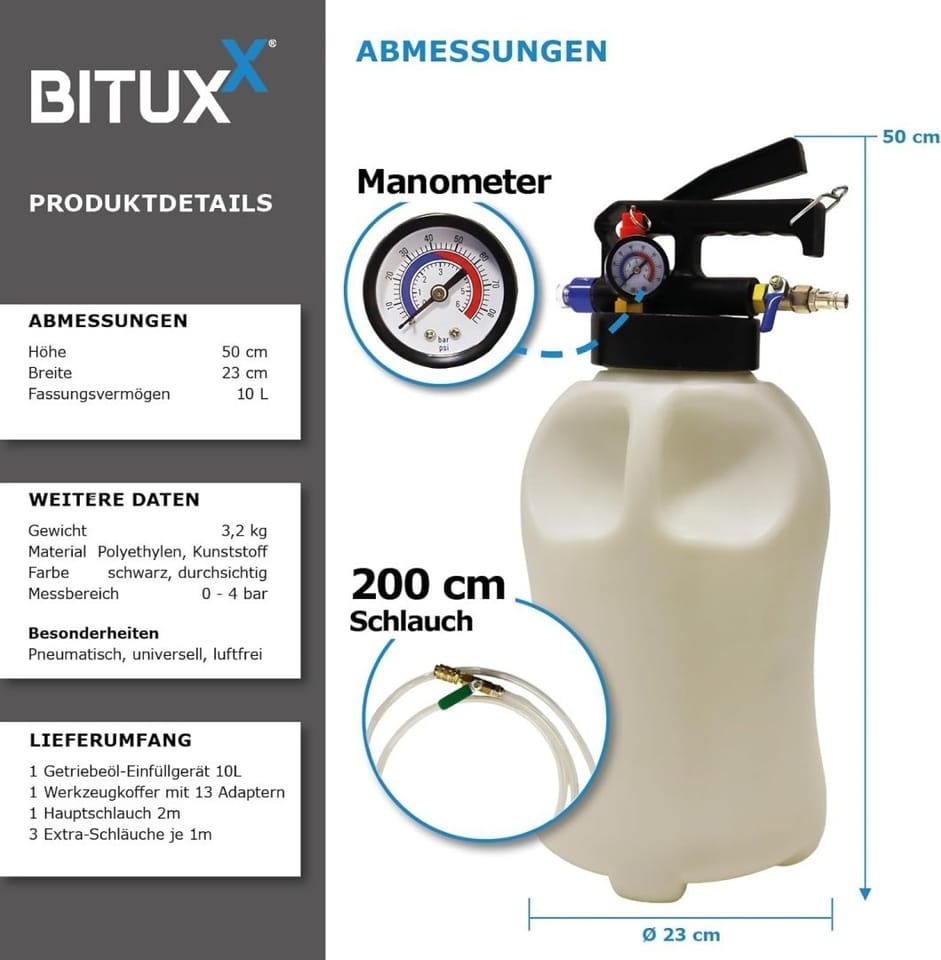 BITUXX Uniwersalny przyrząd do nalewania oleju przekładniowego - pompa pneumatyczna 10 L