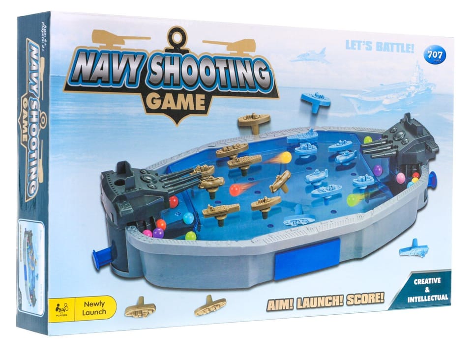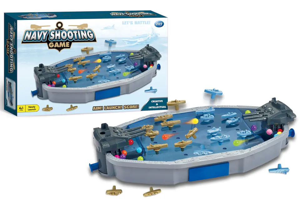 Zręcznościowa gra Bitwa Statków dla dzieci od czwartego roku życia, a także dorosłych. Gra stanowi klasyk, bo któż z nas w nią nie grał, na kartce, na planszach itd. Tym razem mamy do dyspozycji okręt z wyrzutniami, pociskami i statkami. W grę należy grać w dwuosobowych zespołach. Zasady gry są bardzo proste, należy zatopić wszystkie statki przeciwnika. Każdy z graczy ma do dyspozycji wyrzutnię, do której załadować należy koraliki - pociski. Należy wycelować w okręt przeciwnika i go zatopić. Kto pierwszy zatopi wszystkie okręty przeciwnika, wygrywa.