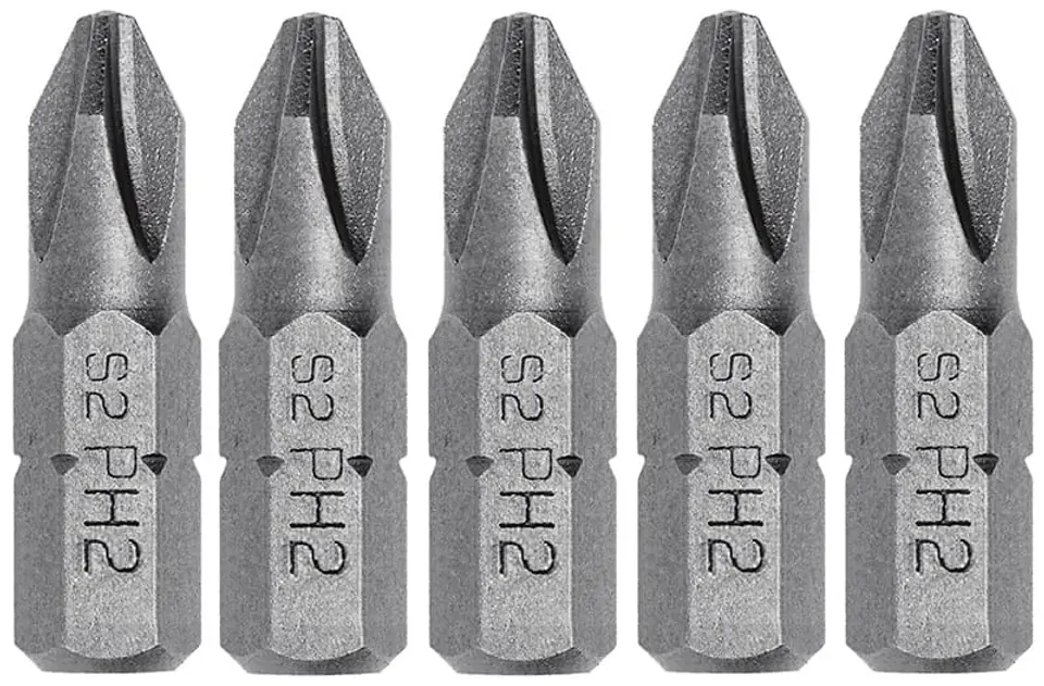 Końcówki wkrętakowe krzyżowe Phillips PH2 stosowane w wiertarko-wkrętarkach sieciowych i akumulatorowych.