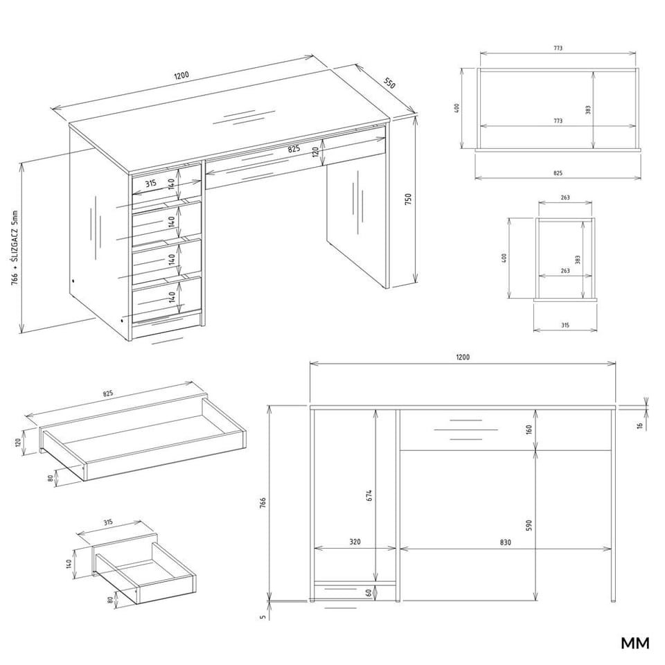 - Blat 120 cm – wygodna przestrzeń do pracy i nauki