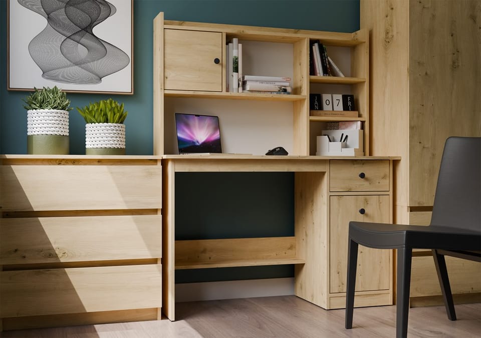 Szukasz biurka, które pomoże Ci utrzymać porządek i stworzyć wygodną przestrzeń do pracy lub nauki? Ten model to praktyczne rozwiązanie, które łączy prostą formę z maksymalną funkcjonalnością.