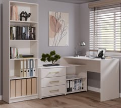 Biurko DANY jest w kształcie litery L, dzięki czemu łatwo wykorzystać wolne przestrzenie w pokoju, jednocześnie zapewniając dużą powierzchnię roboczą.
