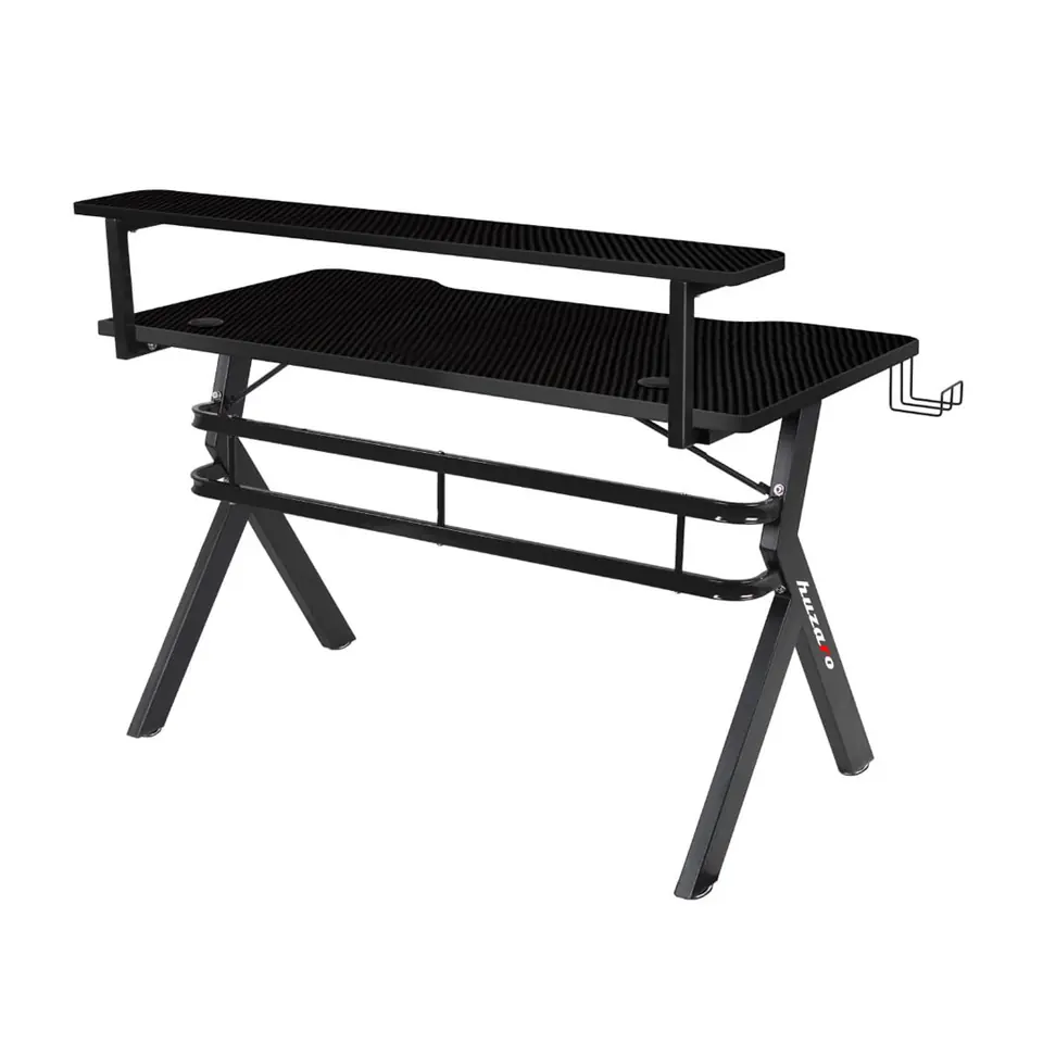 | Pozostałe cechy: | Konstrukcja: wzmocniona; aluminiowa, Powłoka: Carbon, Nóżki: regulowane, Grubość blatu: 2.5 cm, Uchwyty: na słuchawki; napoje, pady; głośniki; płyty, Wloty na przewody: 2 |