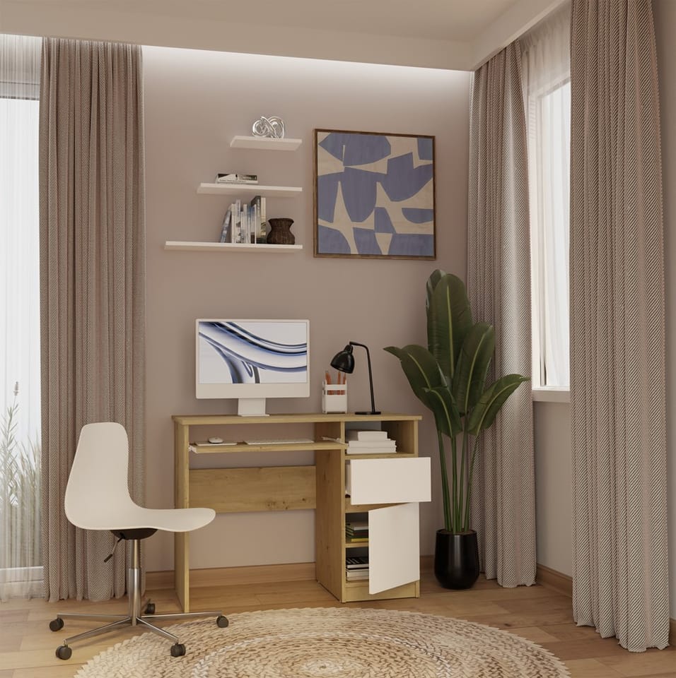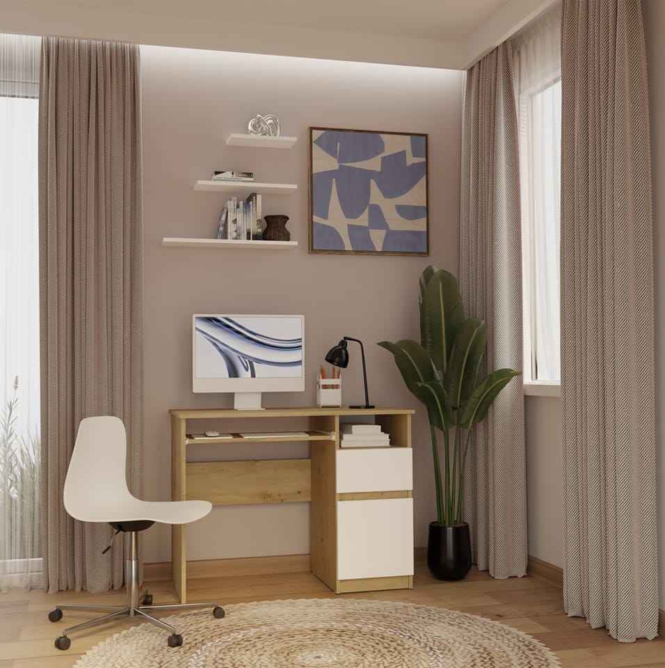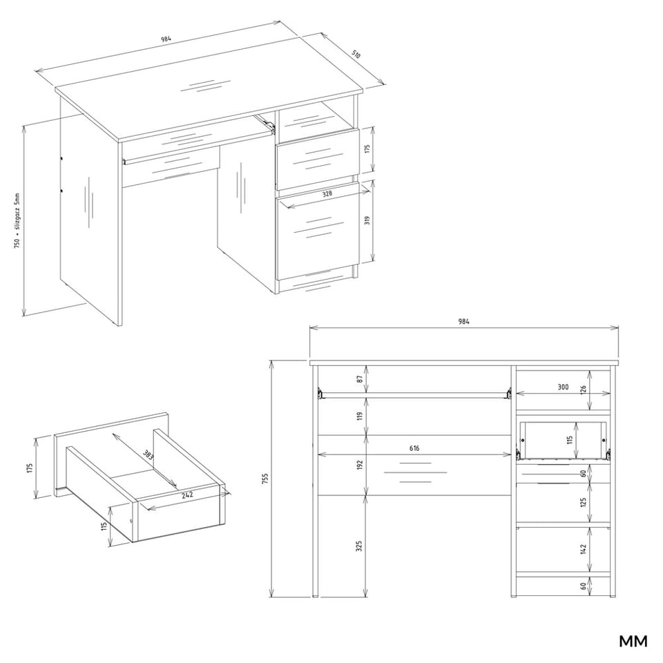 Biurko Porto Prawe to doskonały wybór zarówno do domowego pokoju, jak i do biura, idealnie łącząc funkcjonalność z nowoczesnym designem. Dzięki swojej praktycznej konstrukcji i eleganckiemu wyglądowi, biurko stanowi doskonałą bazę do codziennej pracy. Sprawdzi się zarówno w przestronnych gabinetach, jak i w niewielkich pomieszczeniach, gdzie liczy się optymalizacja przestrzeni. GŁÓWNE CECHY MEBLA: