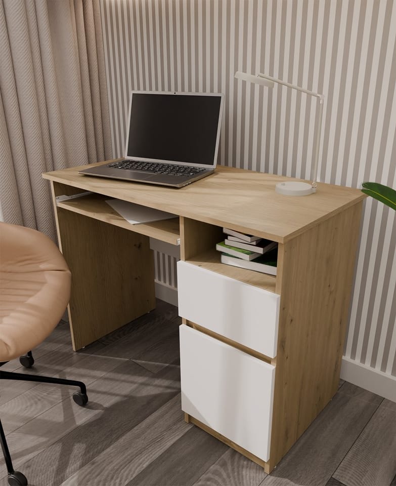 BIURKO Z SZUFLADĄ, SZAFKĄ I PÓŁKĄ NA KLAWIATURĘ