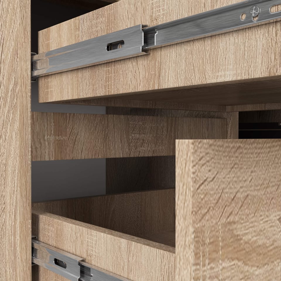 - Biurko wykonane z płyty laminowanej 16mm firmy kronospan odpornej na ścieranie - Posiada wiele przestrzeni do dowolnego zagospodarowania- Na półkach bez problemu zmieszczą się segregatory- Szuflady poruszają się na metalowych prowadnicach kulkowych- Widoczne krawędzie oklejone obrzeżem ABS gwarantujący wyższą odporność na uszkodzenia- Biurko do samodzielnego montażu - Biurko komputerowe narożne- Instrukcja w dostawie - Gwarancja 24 miesiące