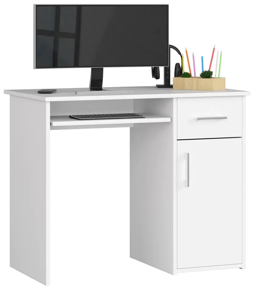 - Biurko wykonane z płyty laminowanej odpornej na ścieranie - Posiada wiele przestrzeni do dowolnego zagospodarowania- Wewnątrz drzwiczek znajduje się jedna półka- Fronty szuflad i drzwiczek wykonane z płyty laminowanej- Szuflady i półka pod klawiaturę poruszają się na metalowych prowadnicach kulkowych- Widoczne krawędzie oklejone obrzeżem ABS gwarantujący wyższą odporność na uszkodzenia- Uchwyty do szuflad i drzwiczek koloru srebrnego- Biurko do samodzielnego montażu - Biurko wolnostojące (płyta laminowana z tyłu biureczka)- Instrukcja w dostawie - Gwarancja 24 miesiące