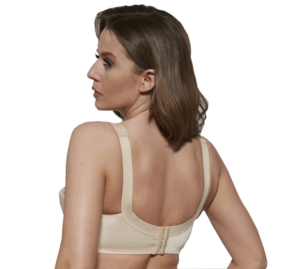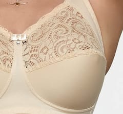 Model 583 Nina jest biustonoszem typu "semi-soft". Delikatne usztywnienie dolnej części miseczki gwarantuje doskonałe podtrzymanie biustu. Ponadto zastosowana nowoczesna "oddychająca" gąbeczka świetnie absorbuje wilgoć i wbrew pozorom nie powoduje optycznego powiększenia biustu. Górna część miseczki wykończona jest niebanalną, trójwymiarową koronką. Tradycyjne, szerokie ramiączka z regulacją na całej długości pozwalają na optymalne dopasowanie do sylwetki. Trzystopniowe zapięcie gwarantuje komfort noszenia przez cały dzień.