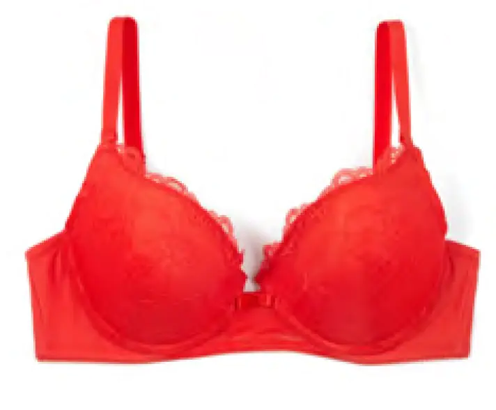 Biustonosz damski typu push-up. Ozdobiony delikatną koronką. Skład: 48% bawełna, 45% nylon, 7% elastan.