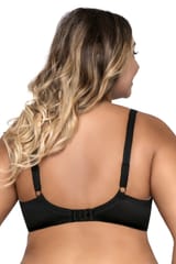 Bestsellerowy model AV 1030 dzięki idealnie skrojonej konstrukcji perfekcyjnie zbiera i unosi biust. Wykonany jest z wysokiej jakości materiałów, które przepuszczają powietrze i zapewniają maksimum komfortu użytkowania. Dolna część miseczek to połączenie miękkiej pianki, delikatnej bawełny i gładkiej mikrofibry. Górna część wykonana jest z transparentnego, zmysłowego haftu. Bawet to duet kobiecej koronki i stabilnego tiulu. Plecy dzięki elastycznej dzianinie z domieszką lycry doskonale dopasowują się do ciała i pozwalają utrzymać biustonosz w odpowiednim miejscu. Charakterystyczne cechy: typ – semi soft, konstrukcja – semi-soft novato (K-1030), ramiączka – nieodpinane, regulowane z metalowym, powlekanym regulatorem, zapięcie – dwurzędowa/trzyrzędowa, dwustopniowa haftka, fiszbiny boczne.