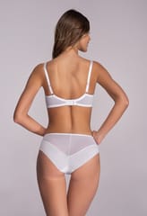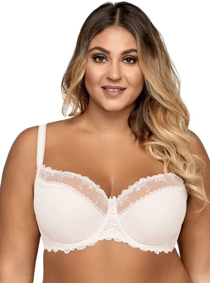 Bestsellerowy model AV 1030 dzięki idealnie skrojonej konstrukcji perfekcyjnie zbiera i unosi biust. Wykonany jest z wysokiej jakości materiałów, które przepuszczają powietrze i zapewniają maksimum komfortu użytkowania. Dolna część miseczek to połączenie miękkiej pianki, delikatnej bawełny i gładkiej mikrofibry. Górna część wykonana jest z transparentnego, zmysłowego haftu. Bawet to duet kobiecej koronki i stabilnego tiulu. Plecy dzięki elastycznej dzianinie z domieszką lycry doskonale dopasowują się do ciała i pozwalają utrzymać biustonosz w odpowiednim miejscu. Charakterystyczne cechy: typ – semi soft, konstrukcja – semi-soft novato (K-1030), ramiączka – nieodpinane, regulowane z metalowym, powlekanym regulatorem, zapięcie – dwurzędowa/trzyrzędowa, dwustopniowa haftka, fiszbiny boczne.