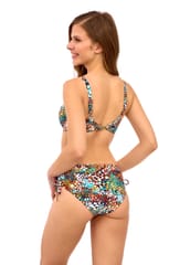 Poszukujesz kostiumu, który wyróżni się na plaży? Kostium Luna to nasz Bestseller! Model łączy ze sobą elegancję oraz wygodę, zachowany w kolorach ziemi. Góra kostiumu posiada miękkie miseczki z modelującymi cięciami oraz jest usztywniony fiszbinami, dzięki czemu doskonale podtrzymuje średnie i duże biusty. Ramiączka regulowane, nieodpinane. Szerokość ramiączek i typ zapięcia dopasowany do rozmiaru kostiumu. Miedzy miseczkami delikatna ozdoba dodająca uroku całości. Idealna propozycja dla kobiet o pełniejszych kształtach. Skład surowcowy: 85% Poliamid, 15% Elastan