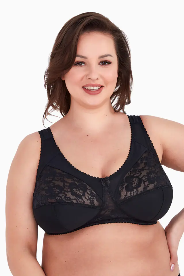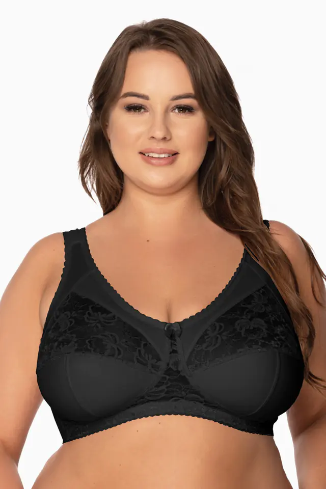 Biustonosz Melodia BSO 1162● miękki model bez fiszbin i usztywnień● mocno zabudowana konstrukcja z wysokim środkiem● nadaje piersiom piękny naturalny kształt● górna część miseczki z elastycznej koronki● skierowany głównie do zwolenniczek naturalnie utrzymującego się biustu● dostępność dużych obwodów● model zabudowany, biust nie wypada z miseczek● szerokie gumy nie wbijają się w ciało● ramiączka poszerzane, wzmocnione pianką, nie wbijają się w ciało● brak fiszbin bocznych, obwód elastycznie dopasowuje się do ciała● konstrukcja: Soft S26