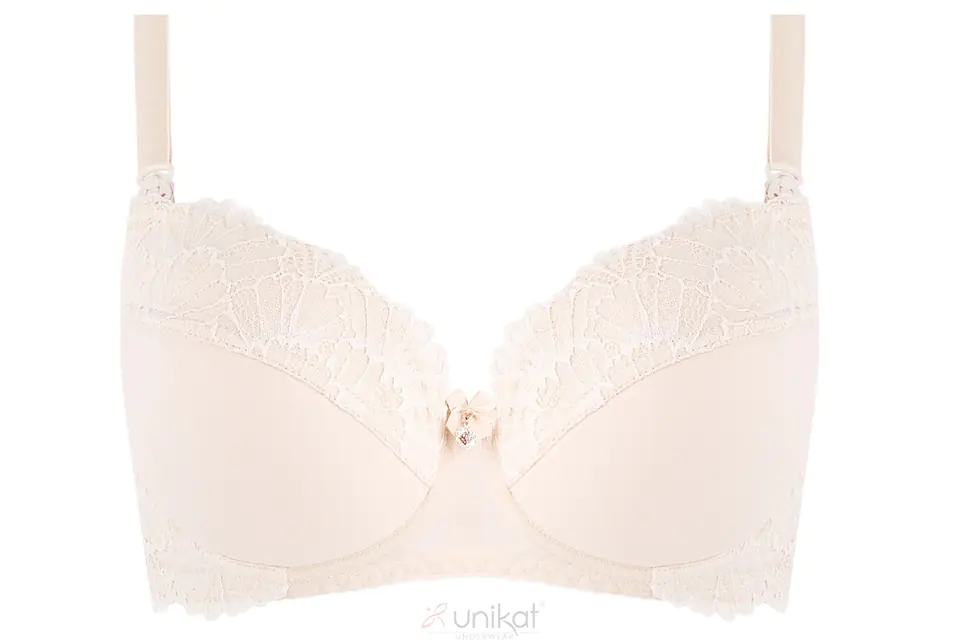 Biustonosz Tereza jest najlepszym dowodem na to, że bielizna dla świeżo upieczonych mam może być piękna, elegancka i praktyczna. Miseczki biustonosza są półusztywniane z odpinanym klipsem umożliwiającym karmienie w dowolnym miejscu. Zewnętrzną, górną część misek zdobi delikatna i przyjemna dla skóry koronka z motywem kwiatowym. Środek obszyty jest miłą i miękką w dotyku bawełną zapewniającą większy komfort użytkowania.