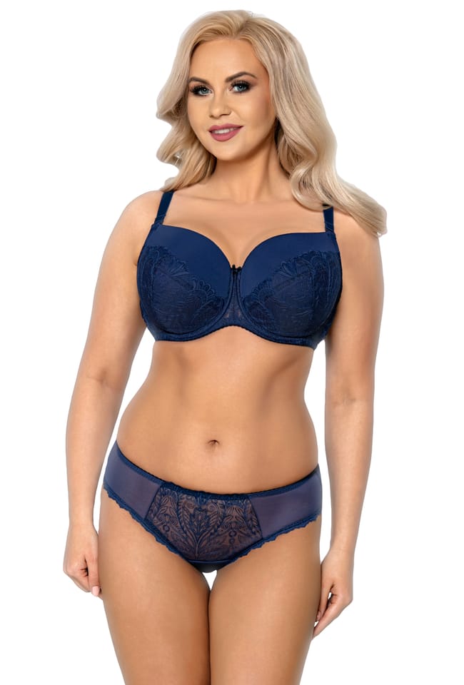 Typ:full cup – K3Opis:– klasyczny full cup wykończony bardzo eleganckim haftem,– między miseczkami delikatna kokardka,– regulowane, odpinane ramiączka.Kolor:granatowyDo kompletu polecamy figi VF-377.