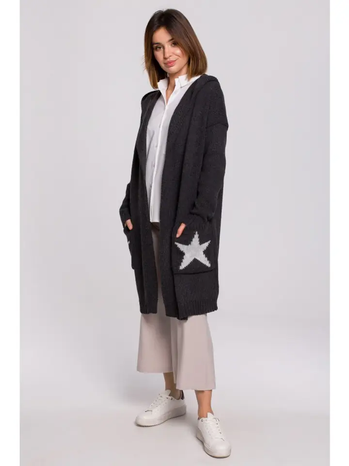 BK063 Kardigan z motywem gwiazdy - grafitowy kolor Grafitowy, rozmiar L/XL