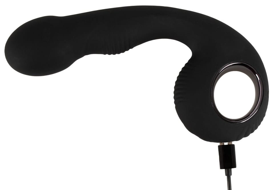 Stymuluje z najwyższą precyzją - wewnątrz i na zewnątrz!Idealnie zakrzywiony wibrator punktu G i P od Black Velvets z charakterystyczną główką do wibromasażu. Do precyzyjnej stymulacji waginalnego punktu G i/lub analnego punktu P (prostaty). Wibruje również intensywnie na wewnętrznym uchwycie, aby jednocześnie pieścić łechtaczkę lub odbyt. Wypustki na główce i wewnętrznym uchwycie intensyfikują stymulację. Dzięki jedwabiście miękkiej w dotyku teksturze, ten jędrny silikonowy wibrator jest łatwy do włożenia i ślizga się jakby sam.2 mocne, ciche silniki zapewniają po 10 intensywnych trybów wibracji w główce i rączce. Można nimi sterować oddzielnie za pomocą przycisku na praktycznym uchwycie pierścieniowym. Nawet w wannie i pod prysznicem, ponieważ wibrator G & P-Spot jest wodoodporny. Antypoślizgowy pierścień zapewnia również bezpieczną obsługę analną bez poślizgu.Możliwość ładowania - kabel USB do ładowania w zestawie.Całkowita długość 16,8 cm, długość wkładki 11,5 cm, Ø 2,3-3,8 cm.Waga 127 g.Silikon, PU, ABS.