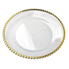 BLANCHE CLEAR . podtalerz dekoracyjny Klasa i blask na Twoim stoleWprowadź elegancję do każdej aranżacji stołu dzięki podtalerzowi BLANCHE CLEAR . transparentnej dekoracji, która doda szyku zarówno codziennym, jak i wyjątkowym chwilom. Wykonany z trwałego tworzywa o szklanym efekcie, podtalerz łączy w sobie subtelność i ponadczasowy styl.Poznaj zalety, które Cię zachwycą:Stylowa oprawa każdego posiłku . podtalerz podkreśla elegancję zastawy i tworzy spójną, wyrafinowaną kompozycję na stole.Przezroczysty design . pasuje do każdego koloru i stylu naczyń . od klasycznych po nowoczesne.Lekki, ale trwały . wykonany z wysokiej jakości tworzywa imitującego szkło . piękny efekt bez obaw o stłuczenie.Dekoracja i ochrona . podtalerz chroni blat przed gorącymi naczyniami i zabrudzeniami, jednocześnie dodając uroku całej aranżacji.Wszechstronne zastosowanie . idealny na święta, wesela, przyjęcia, ale też na co dzień . zawsze, gdy chcesz dodać eleganckiego akcentu.Wymiary: 33 cm średnicy x 1,5 cm wysokościMateriał: wysokiej jakości tworzywo sztuczneKolor: transparentny . pasuje do każdej aranżacji
