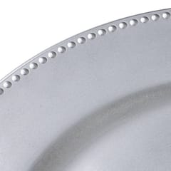 BLANCHE SILVER . podtalerz dekoracyjnyKlasyczna elegancja w srebrnym wydaniuPodkreśl wyjątkowy charakter każdego posiłku z podtalerzem BLANCHE SILVER . dekoracyjnym akcentem, który wnosi do aranżacji stołu szyk i blask. Subtelne srebrne wykończenie dodaje klasy, nie przytłaczając . idealne zarówno na rodzinne spotkania, jak i eleganckie przyjęcia.Najważniejsze korzyści dla Ciebie:Stylowy i ponadczasowy . srebrny kolor doskonale komponuje się z różnorodną zastawą, niezależnie od stylu.Efektowna oprawa posiłku . podtalerz eksponuje talerze i dodatki, tworząc spójną i elegancką kompozycję.Praktyczne piękno . chroni powierzchnię stołu przed ciepłem naczyń, zachowując przy tym estetykę aranżacji.Lekkie i wytrzymałe tworzywo . wygląda jak szkło, ale nie tłucze się i jest wygodny w użytkowaniu.Na każdą okazję . idealny na święta, wesela, kolacje we dwoje, a także na co dzień, gdy chcesz zadbać o wyjątkowy klimat.Wymiary: 33 cm średnicy x 1,5 cm wysokościMateriał: wysokiej jakości tworzywo sztuczneKolor: srebrny . elegancki, chłodny, uniwersalny