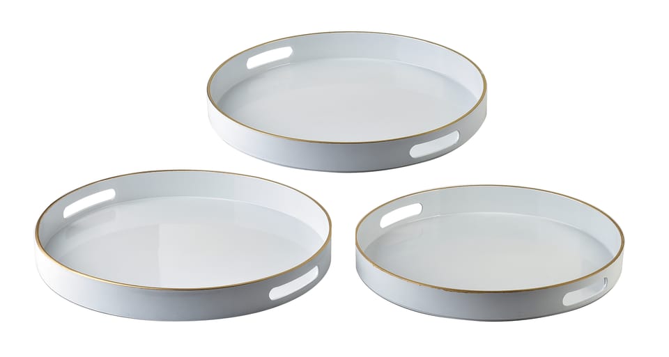 BLANCHE WHITE Komplet 3 Tac Dekoracyjnych okrągłe 38x38x4cm/35x35x4cm/33x33x3,5cm
