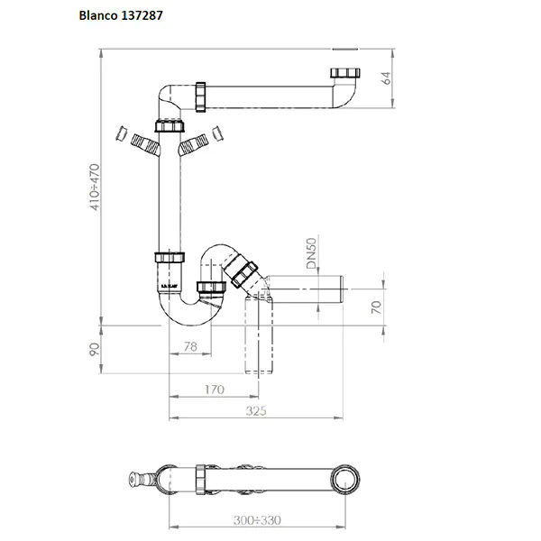 Blanco Syfon plastikowy do zlewu, 40 nebo 50 mm, 325mm, biały, Specjalny syfon 6/4" płaska konstrukcja, EOL