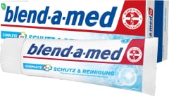 Blend-a-med Complete Plus Schutz & Reinigung to pasta do zębów, która zapewnia najwyższej jakości higienę jamy ustnej. Dzięki zawartości fluoru, skutecznie chroni szkliwo zębów, wzmacniając je i zapobiegając próchnicy. Formuła pasty głęboko oczyszcza zęby, usuwając powierzchniowe przebarwienia i przywracając naturalną biel.