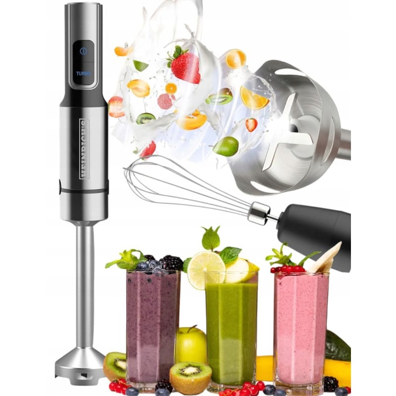 NAJWYŻSZEJ JAKOŚCIBLEDNER RĘCZNYWIELOFUNKCYJNYRENOMOWANEJ FIRMY HEINRICH`SMODEL: HSM 8614Dzięki blenderowi ręcznemu marki HEINRICH`S możesz cieszyć się optymalną mocą bez żadnego wysiłku. Z łatwością przygotujesz różne potrawy w krótkim czasie dzięki wysokowydajnemu silnikowi o mocy 1500 W.?Uwolnij moc witaminBlenduj bez wysiłku, dzięki silnikowi o mocy 1500W.?Jeśli szukasz blendera, który jest bezpieczny i posłuży Ci długie lata, wybierz markę Heinrich`s.??Jego ostrza wykonane ze stali nierdzewnej zapewniają niezawodność, a zabezpieczenie przed zwarciem daje pewność bezproblemowego użytkowania.??Materiał bez zawartości BPA zapewnia bezpieczne użytkowanie, co jest gwarancją, że przygotowywane potrawy będą zarówno smaczne, jak i zdrowe.??Blender ręczny charakteryzuje się wygodą użytkowania. Jego ergonomiczny kształt idealnie dopasowuje się do dłoni, a specjalna konstrukcja stopy minimalizuje ryzyko chlapania podczas mieszania.??Ponadto, jego końcówkę można łatwo zdemontować, co znacznie ułatwia czyszczenie. Wykonany z wysokiej jakości tworzywa sztucznego oraz stali nierdzewnej blender jest nie tylko trwały, ale i elegancki.??Perfekcyjnie dobrana prędkość??Płynna regulacja szybkości??Dostosuj prędkość blendowania do wszystkich składników, dzięki łatwemu w użyciu pokrętłu z 2-stopniową regulacją?PARAMETRY TECHNICZNE:Mocny silnik 1500WOstrza ze stali nierdzewnej, łatwe do czyszczenia2 ustawienia prędkościZmienna regulacja prędkościMaksymalnie: 15000, 500obr/minOświetlenie LEDIdealny do smoothie, zup, orzechów, mrożonych owoców i innych produktów spożywczych220-240V, 50-60Hz, 1500Wslimtex
