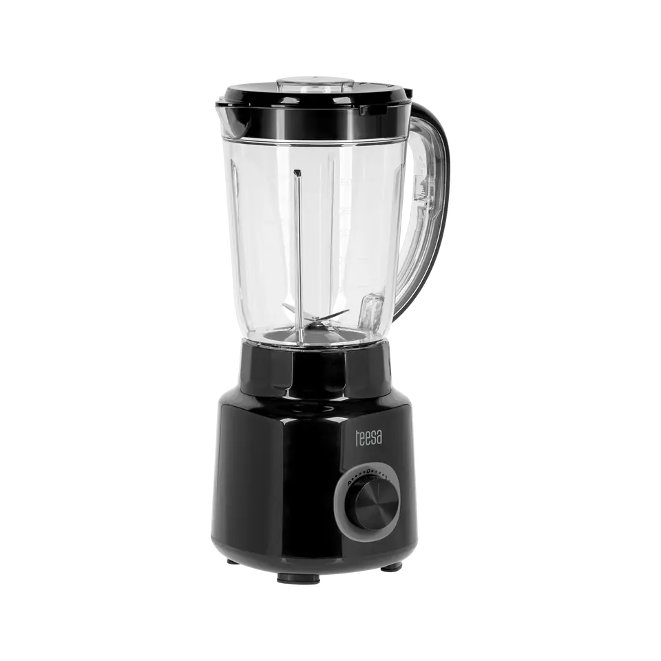 ----------GŁÓWNE FUNKCJE----------2 tryby prędkościFunkcja pracy pulsacyjnejPokrywa z otworemKubek pomiarowyŁatwy w czyszczeniuAntypoślizgowe stopki4 dwupoziomowe ostrzaWolny od BPANiektóre elementy można myć w zmywarce (kielich, pokrywa, kubek pomiarowy)Wskaźnik poziomu z podziałką----------UŻYTE MATERIAŁY----------Obudowa: PPKielich: ASOstrza: Stal nierdzewna----------DANE TECHNICZNE----------Pojemność: 1,5 lPrędkość:1. tryb: 20 000 obrotów/minutę2. tryb: 22 000 obrotów/minutęTryb pulsacyjny: 22 000 obrotów/minutęPoziom dźwięku: < 85 dBPraca ciągła: =< 3 minutyMoc: 500 WZasilanie: 220-240 V; 50/60 HzDługość przewodu zasilającego: 80 cmWymiary (wysokość x średnica): 375 x 175 mmWaga: 1,43 kg