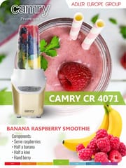 Korzystając z blendera Camry CR 4071 zyskujesz możliwość szybkiego i dokładnego przygotowania koktajli owocowych i warzywnych, smoothie, napojów na bazie produktów mlecznych a nawet gładkich zup-krem.