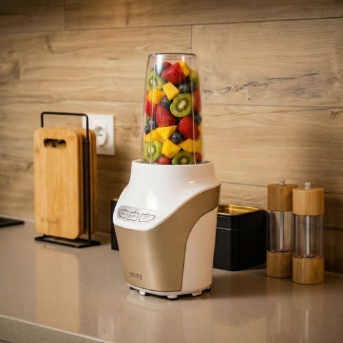 Blender CR 4071 został stworzony z myślą nie tylko o codziennym użytkowaniu w domu. Napoje przygotowujesz w jednym z dwóch kubków (o pojemności 0,5l i 1l). Każdy z nich możesz zamknąć specjalną pokrywką i w ten sposób wygodnie zabrać poza dom. Docenisz świeży koktajl lub smoothie zarówno w pracy, podczas spaceru, jak również w czasie dłuższej podróży. Pokrywka posiada ustnik, dzięki któremu możesz wygodnie pić, bez potrzeby ciągłego odkręcania. Oprócz tego w zakręcanych pojemnikach możesz wygodnie przechowywać koktajle w lodówce. Nic nie stoi na przeszkodzie, by przygotować sobie koktajl wcześniej i wypić go za jakiś czas.