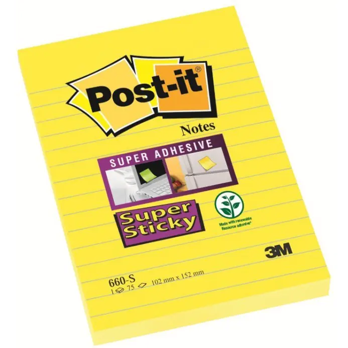 Bloczki 3M POST-IT 660-S 102x152mm zólty 75k linia Super Sticky 510093832