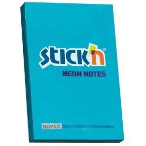 Notes samoprzylepny o wymiarach 76×51 mm zawiera 100 kartek w kolorze niebieskim neonowym.
