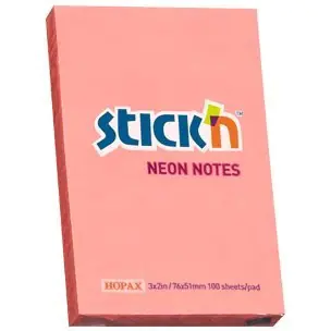 Notes samoprzylepny o wymiarach 76×51 mm zawiera 100 kartek w kolorze rózowym neonowym.