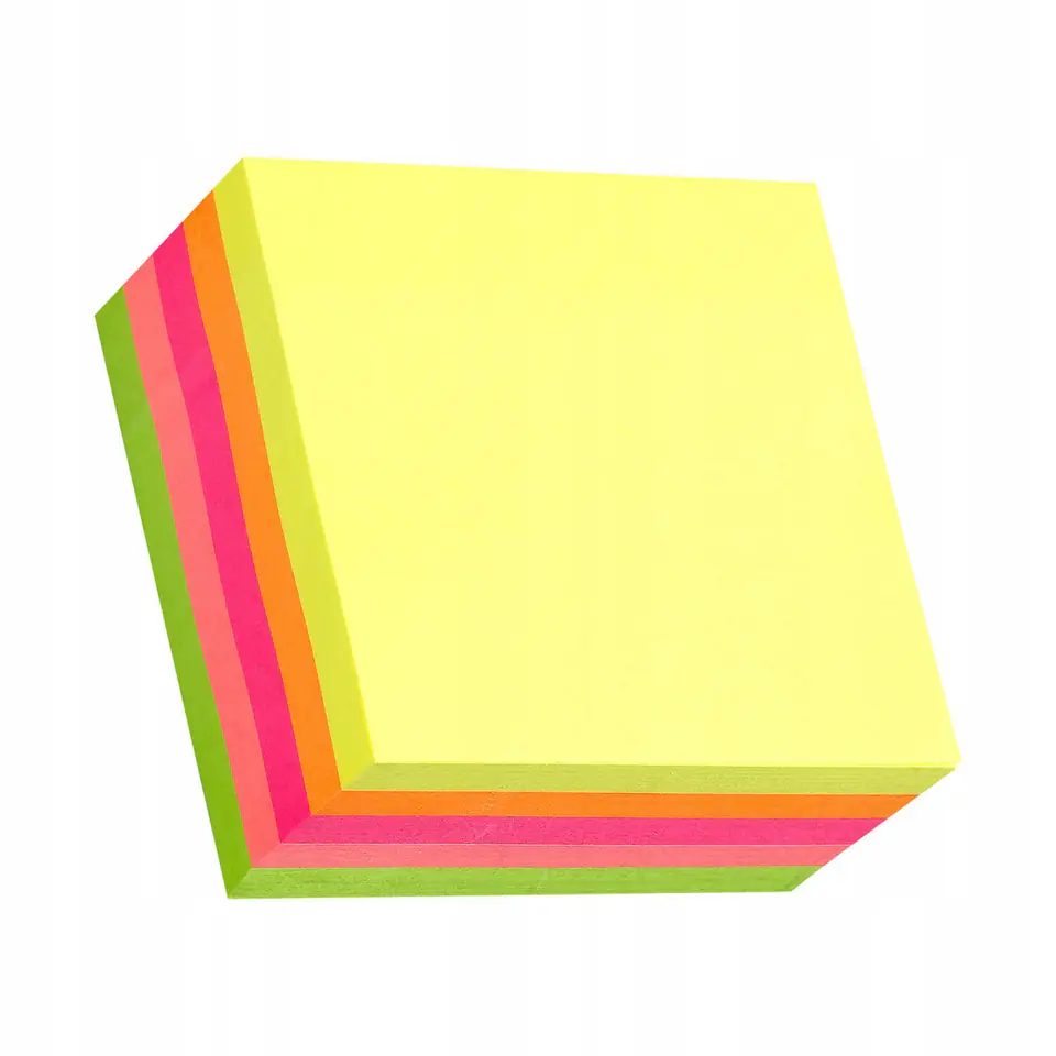 Notes samoprzylepny kostka o wymiarach 76×76 mm zawiera 400 kartek - mix 5 neonowych kolorów: zielony, jasny rózowy, ciemny rózowy, pomaranczowy i zólty.