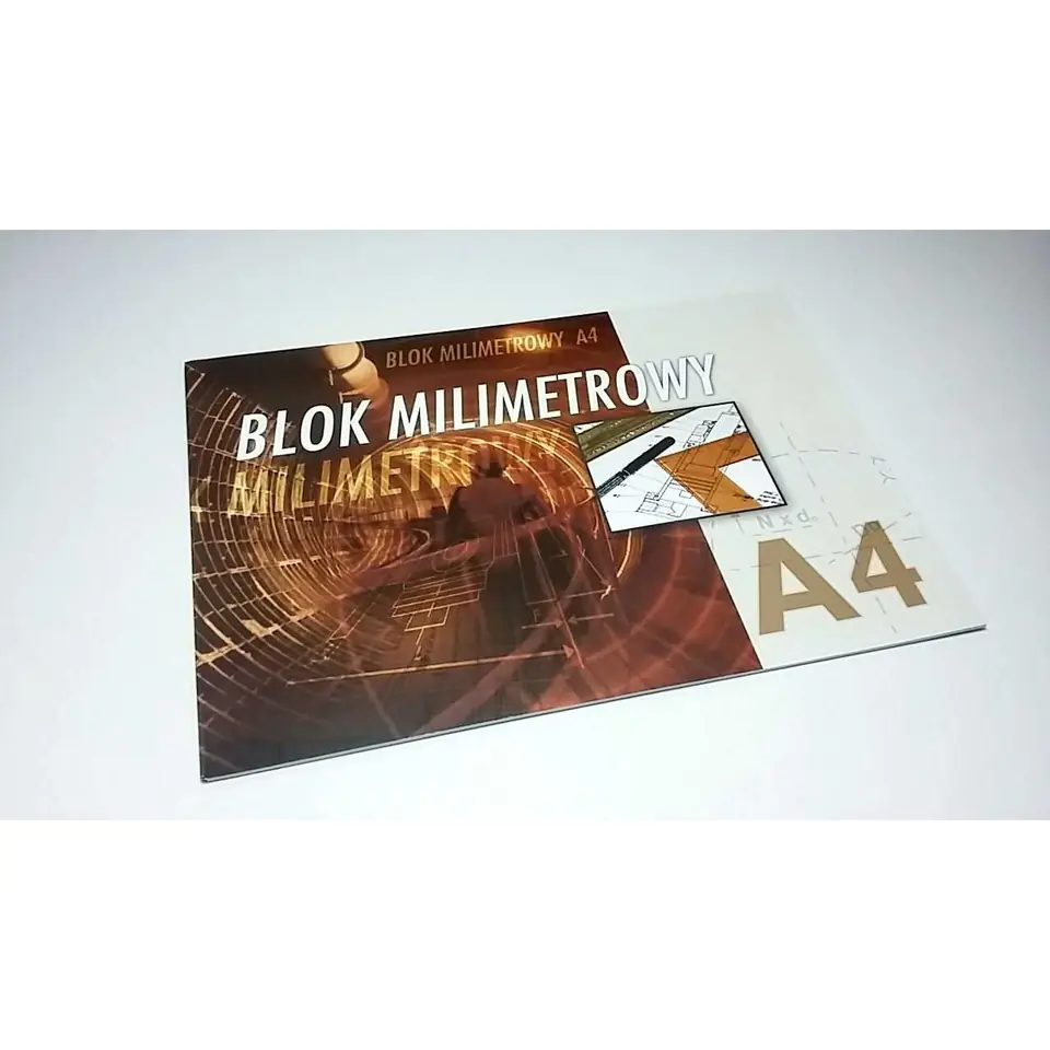 Blok milimetrowy A4 sklada sie z 20 kartek papieru milimetrowego w kolorze jasnobrązowym. Format 297x210 mm.