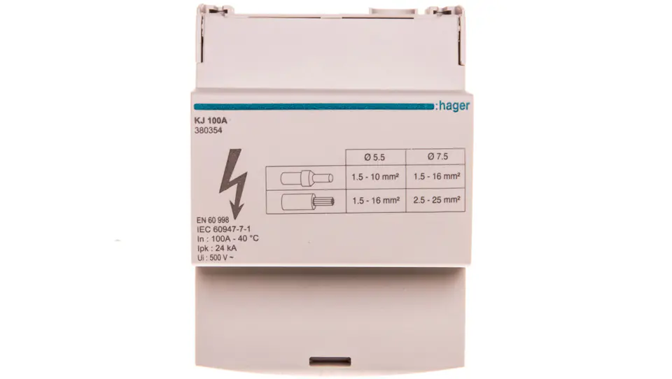 Blok rozdzielczy 4-biegunowy In=100 A Hager KJ100A