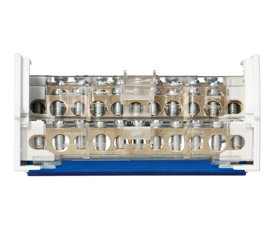 Bloki rozdzielcze montowane na szynę DIN lub płytę montażową, zbudowane są z 4 szyn zaciskowych w obudowie. Stosuje się je w rozdzielniach elektrycznych do rozdziału potencjałów i okablowania.