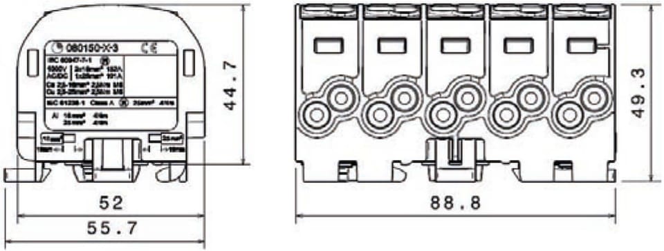 Prąd znamionowy Cu152 A (2 x 16 mm²) / 101 A (1 x 25 mm²)